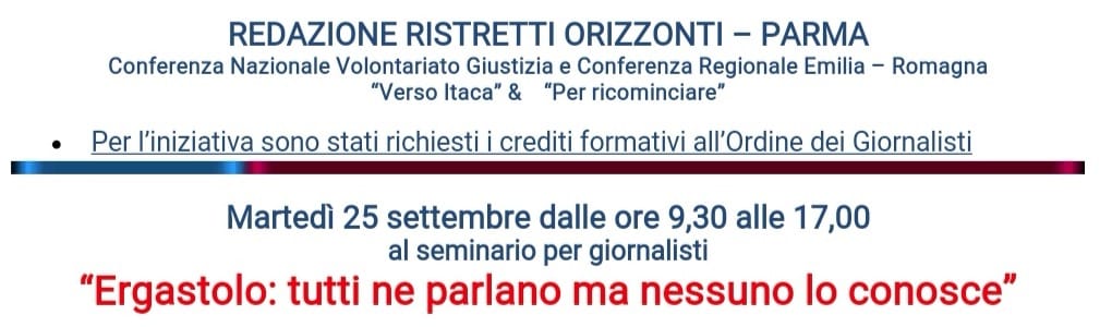Il seminario è organizzato dalla redazione di “Ristretti Orizzonti” di Parma, dalla Conferenza Nazionale Volontariato Giustizia e Conferenza Regionale Emilia – Romagna, da “Verso Itaca” e  “Per ricominciare”.