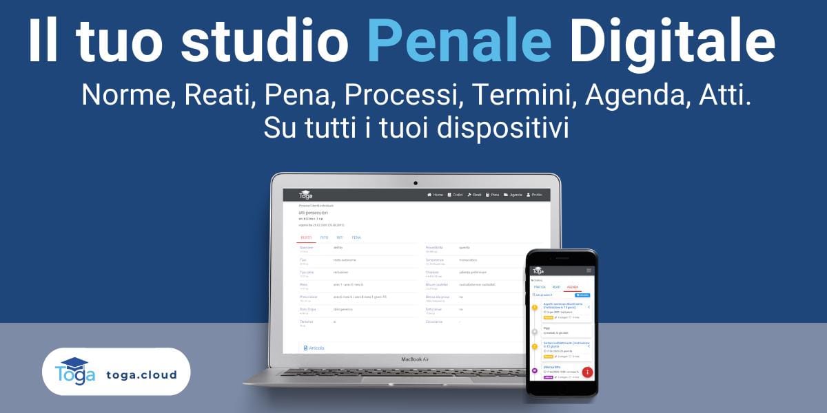 D’ora in avanti, le fattispecie incriminatrici richiamate nelle pubblicazione della nostra Rivista saranno ancorate ai rispettivi articoli di legge su Toga, costantemente aggiornati. Inoltre, nei prossimi mesi, saranno offerti eventi e webinar gratuiti sul tema del processo telematico e delle innovazioni tecnologiche a supporto del penalista.