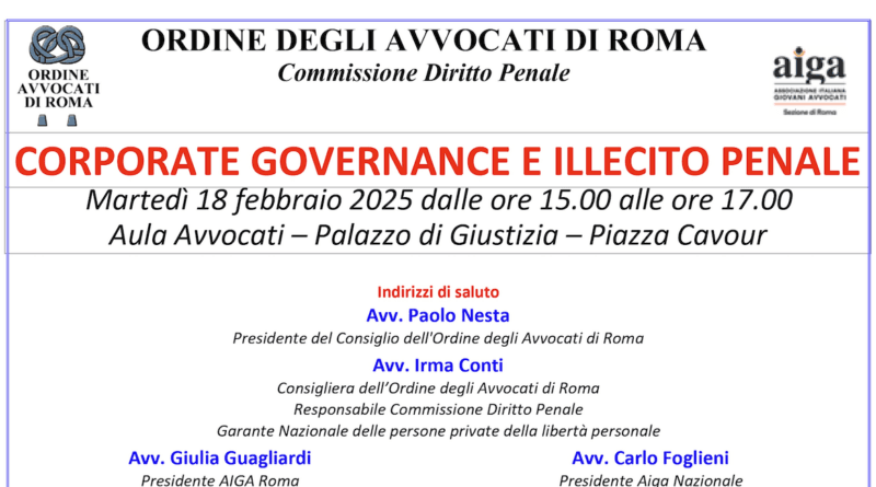 Corporate governance e illecito penale (Roma, 18 febbraio 2025)