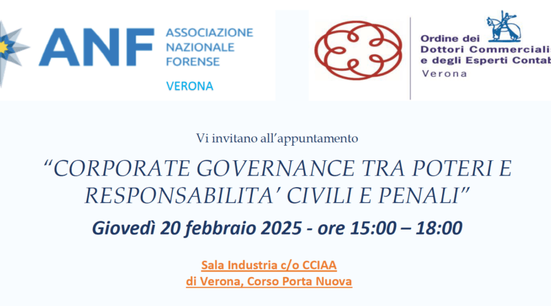La corporate governance tra poteri e responsabilità civili e penali (Verona, 20 febbraio 2025).