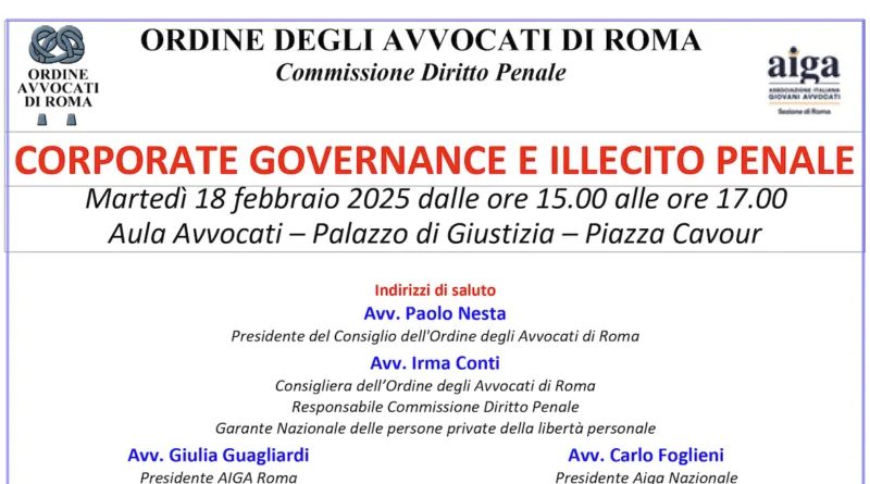 La corporate governance tra poteri e responsabilità civili e penali (Verona, 20 febbraio 2025).