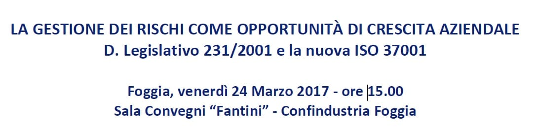 Leggi tuttoRiceviamo, e volentieri pubblichiamo, gli atti del convegno “La gestione dei rischi come opportunità di crescita aziendale. D. Lgs. 231/2001