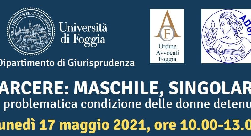 Si terrà il 17 maggio 2021, dalle ore 10 alle ore 13, il seminario dal titolo “Carcere: maschile, singolare. La