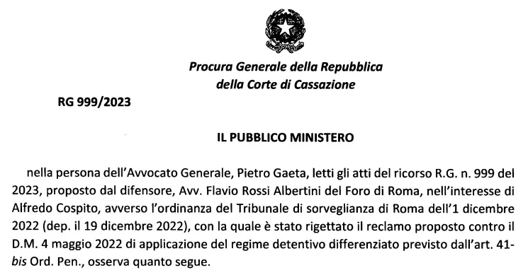 Caso Cospito: la requisitoria del Procuratore Generale della Corte di Cassazione