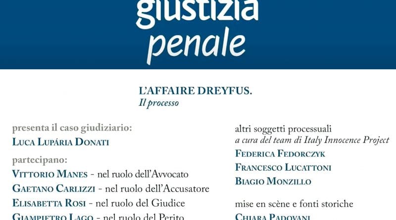 Segnaliamo ai lettori il testo dell’arringa in difesa di Alfred Dreyfus interpretata dal Prof. Vittorio Manes (Professore Ordinario di diritto