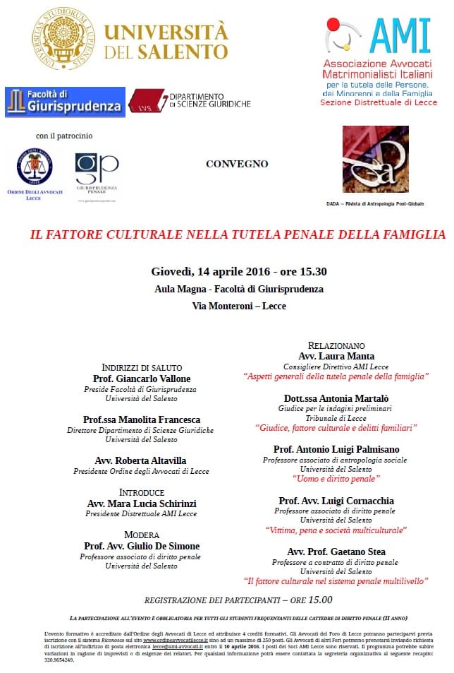 Leggi tuttoSi terrà a Lecce, il 14 aprile 2016, il convengo organizzato dall’Università del Salento – Facoltà di Giurisprudenza in collaborazione